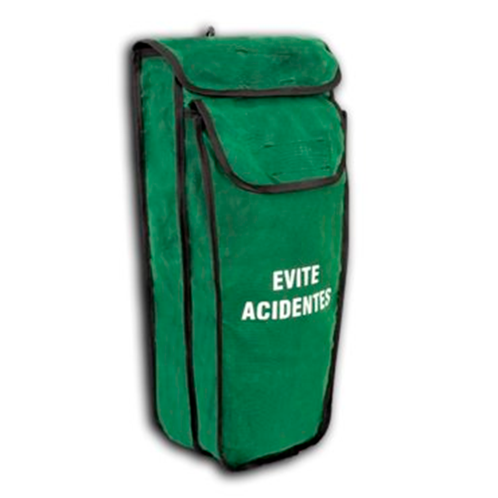 Bolsa de lona impermeável, na cor verde, com mosquetão para pendurar no cinturão.
